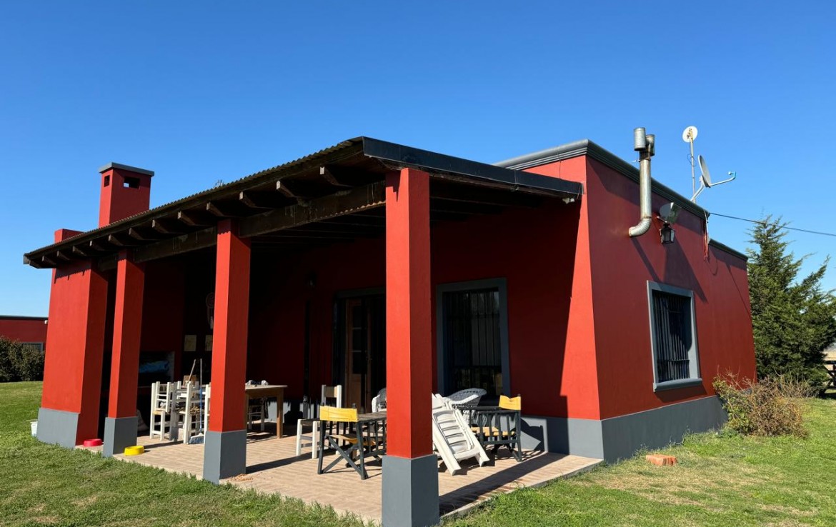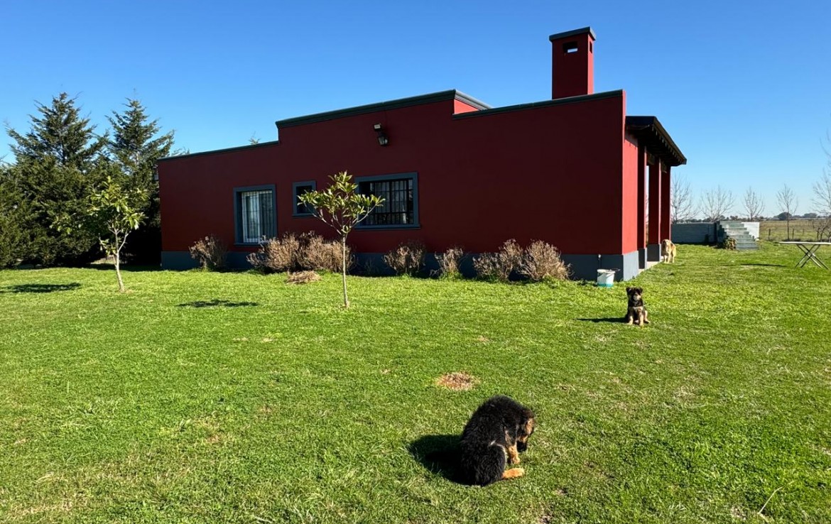 Sobre una fracción de 8,5 hectáreas, la casa principal cuenta con dos dormitorios luminosos, estar comedor integrado con barra desayunadora que aporta calidez y practicidad, y un baño completo. En el exterior, el predio dispone de cancha de polo, un galpón de 12 x 6 metros perfecto para guardado o maquinaria, molino tradicional, container con garlería y tanque australiano que completan la infraestructura rural. Perforación con bomba sumergible. Acceso por la ruta 36 o por la calle 167