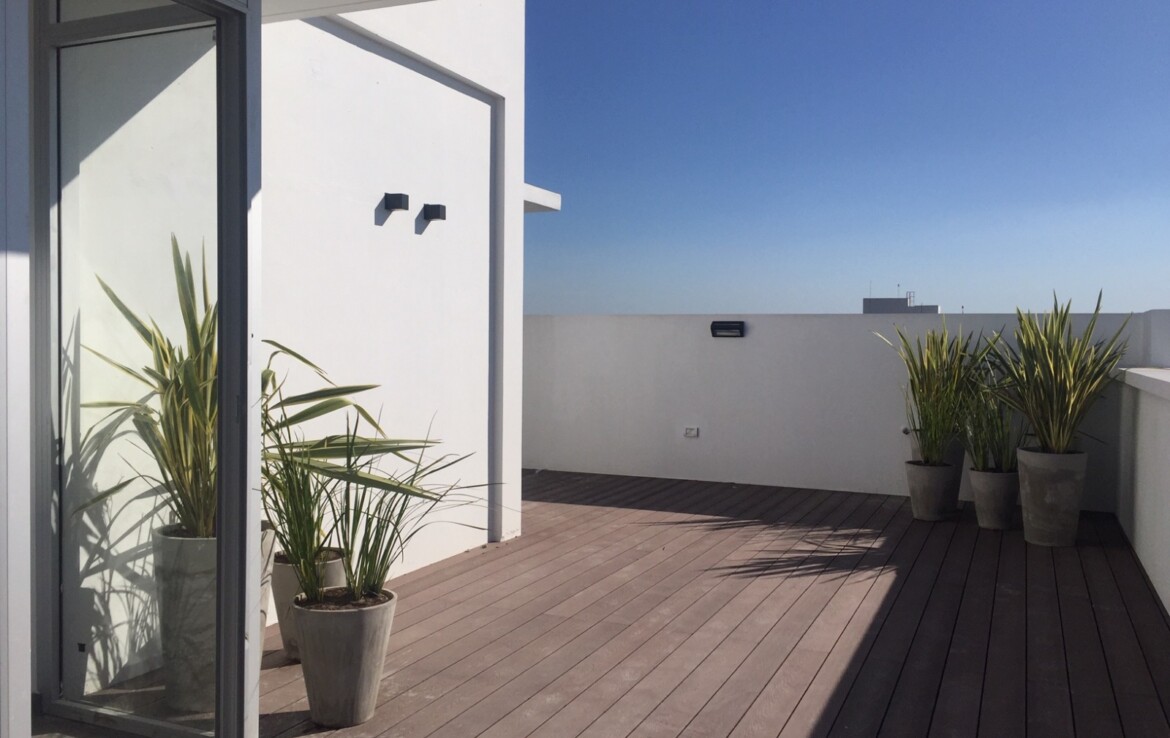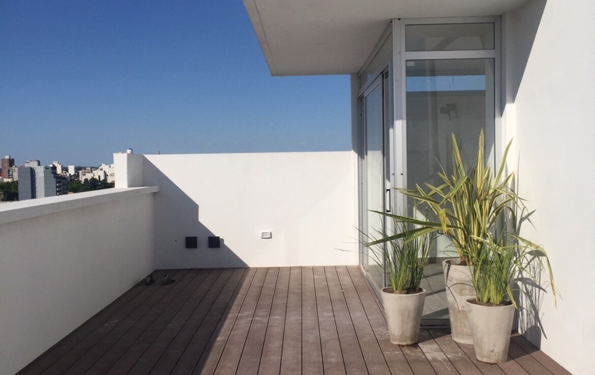 Semipiso, 2 dormitorios (1 con placard y otro con vestidor), estar-comedor, cocina con barra y muebles sobre y bajo mesada, baño completo, toilette, lavadero, patio, balcón, calefacción por losa radiante, SUM en la terraza con parrilla de uso común.