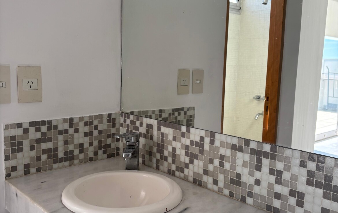 Baños con muy buena iluminación y ventilación. Mesada de mármol blanco turco.