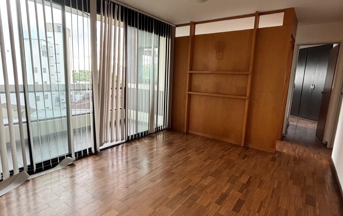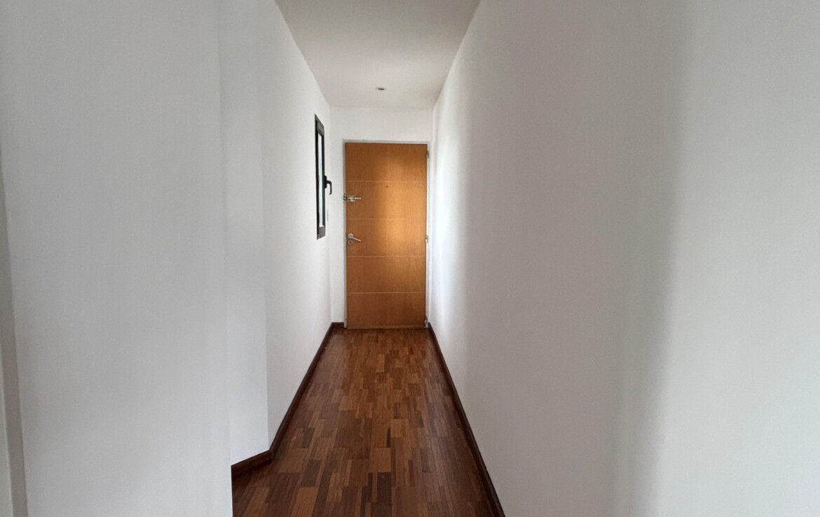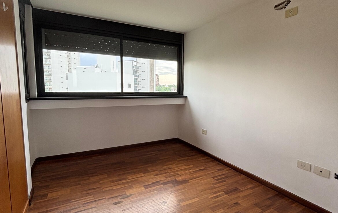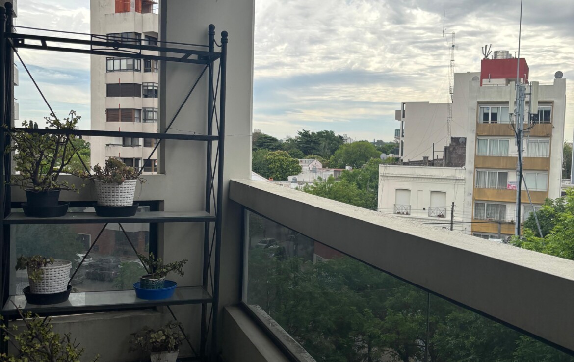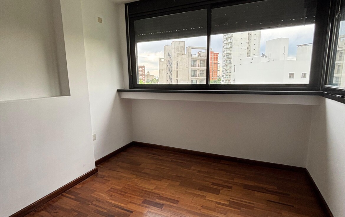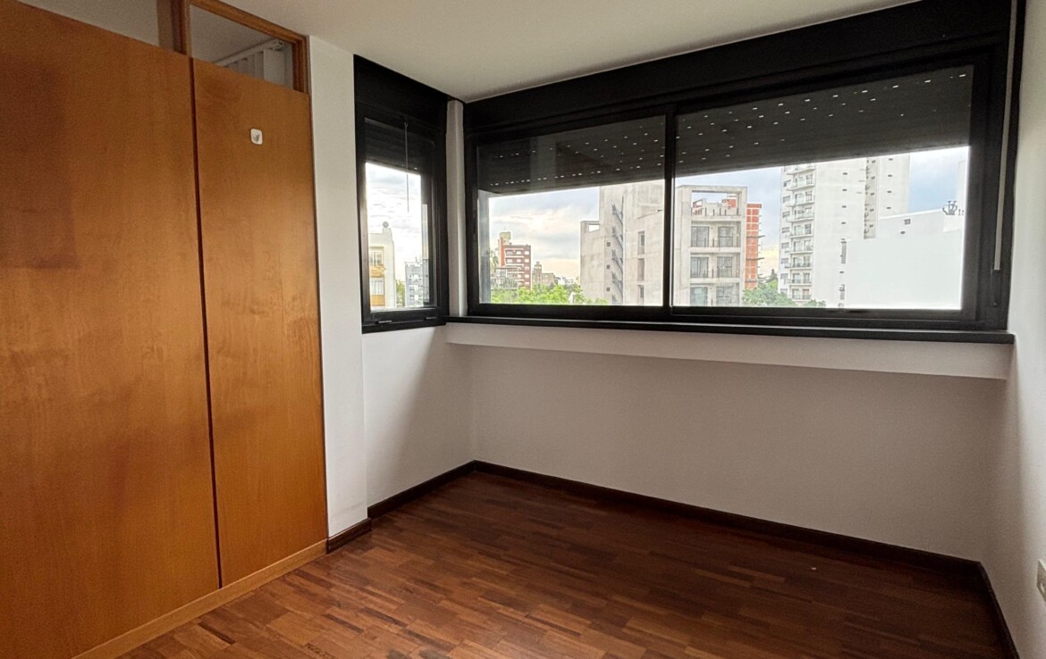 Semipiso con dos dormitorios (uno en suite, con placar y aire acondicionado), un baño completo y un luminoso estar-comedor con salida al balcón.