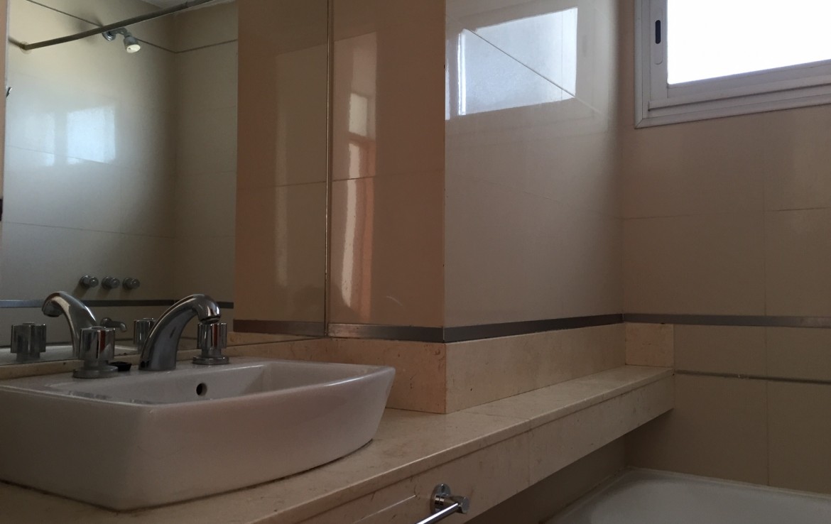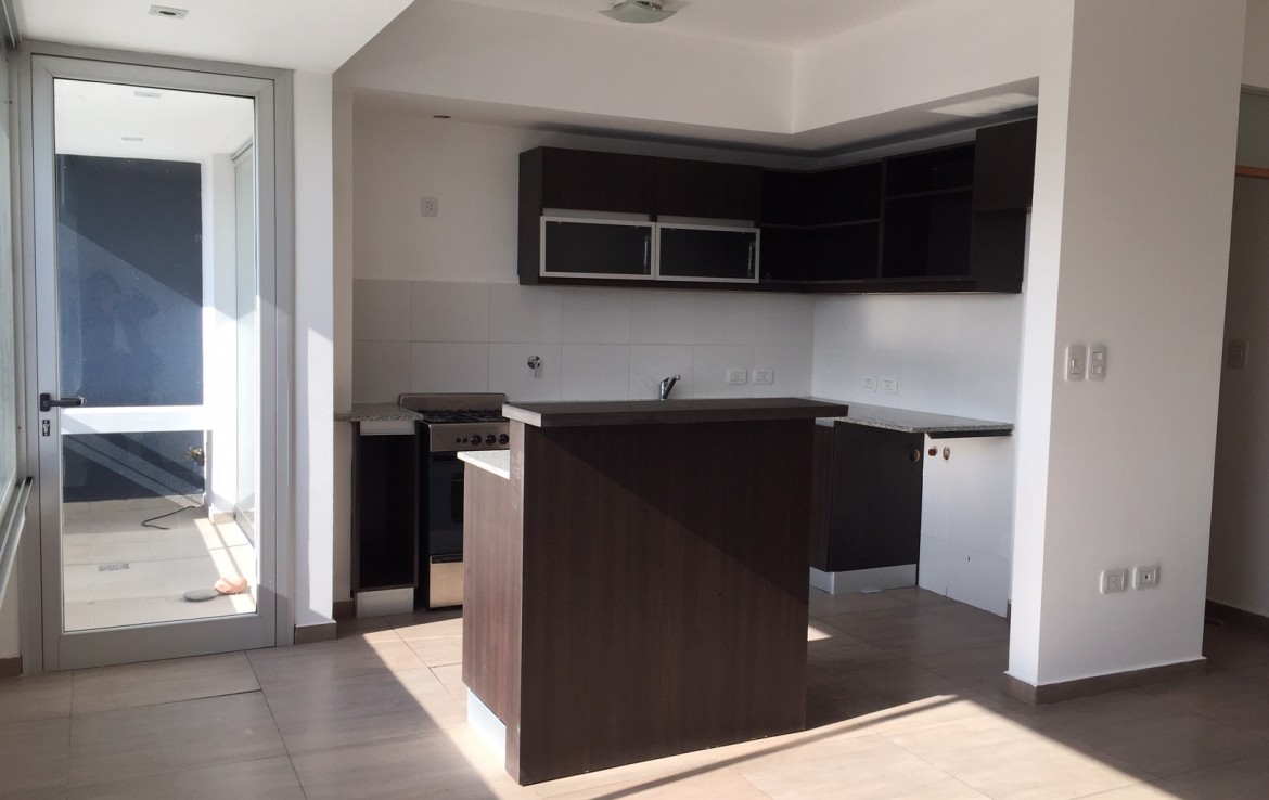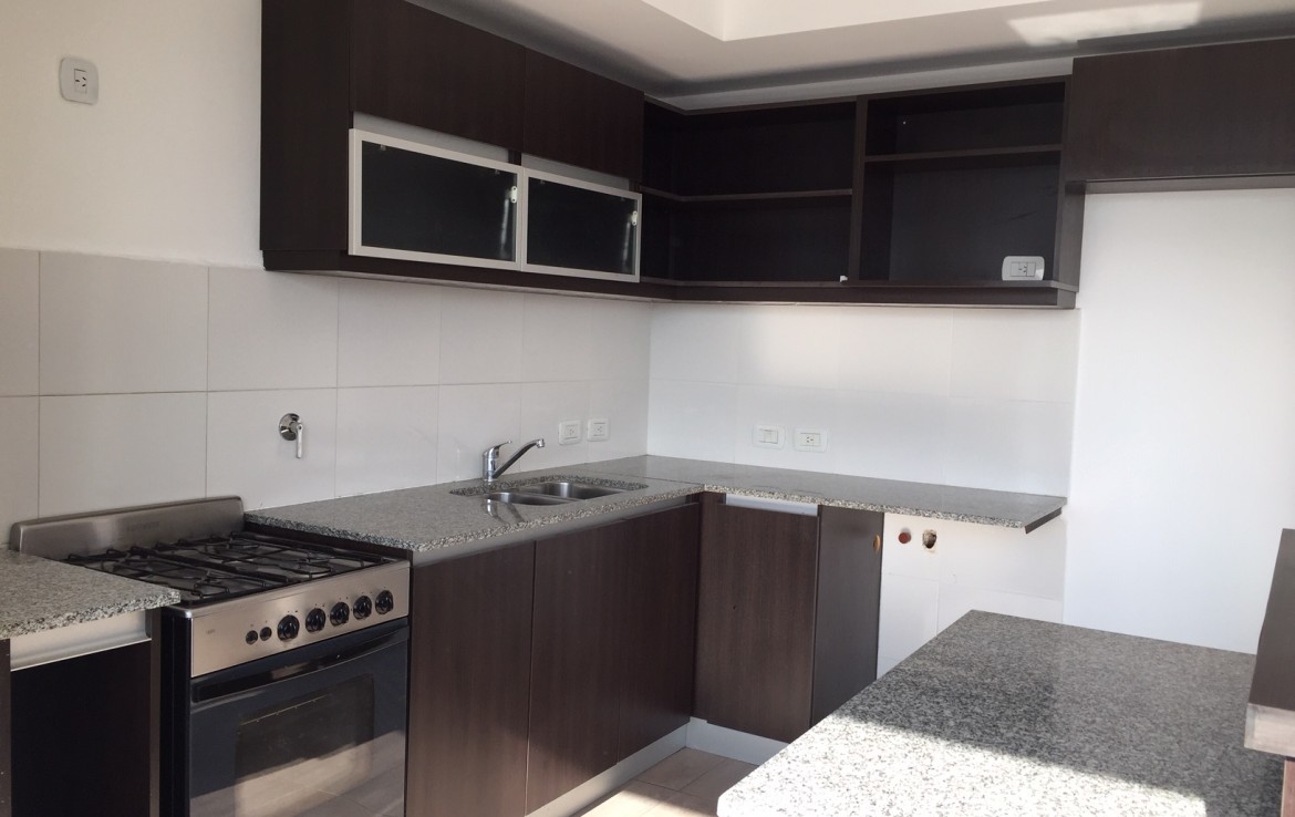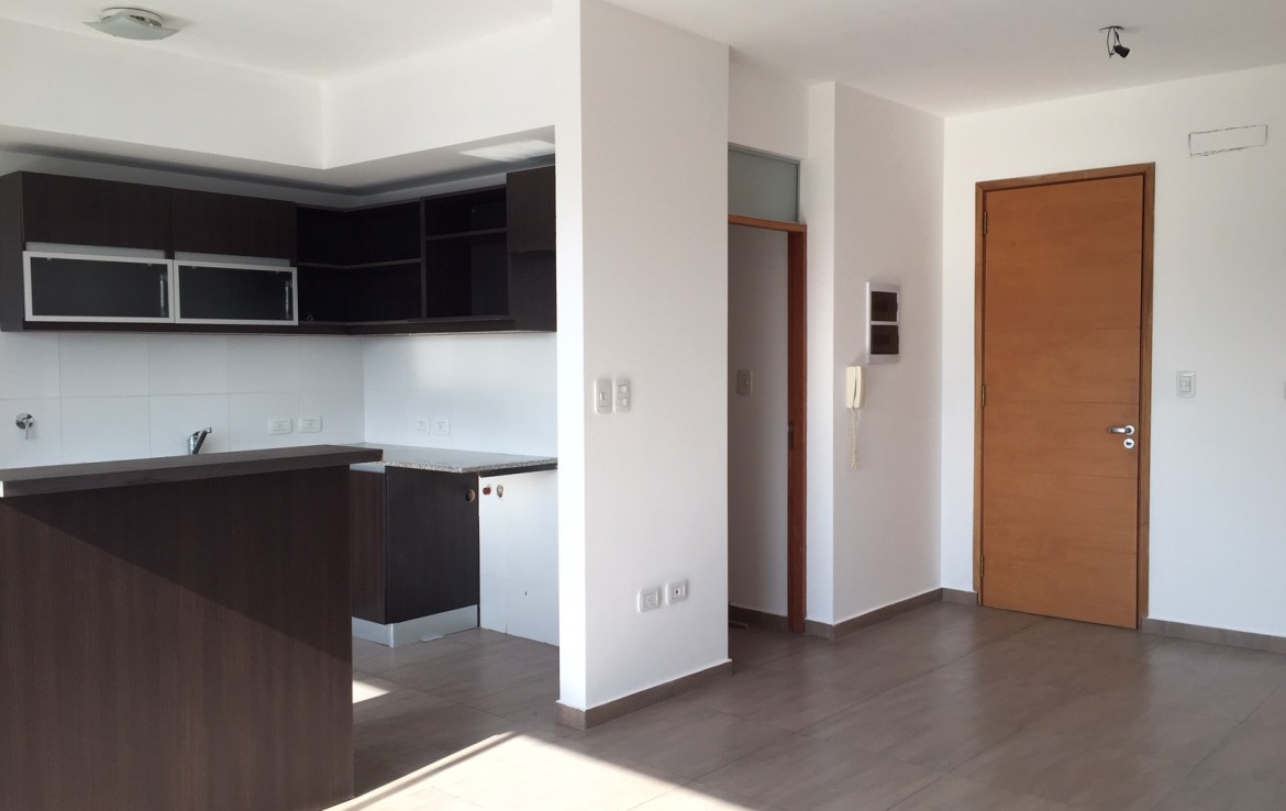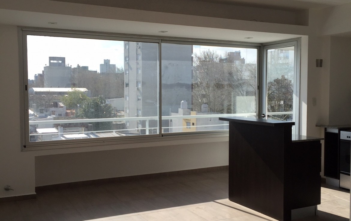 2 dormitorios con placard (1 con A/A frio-calor), estar-cocina-comedor con muebles sobre y bajo mesada con tiro balanceado, baño completo, balcón, calefacción por losa radiante, cochera.