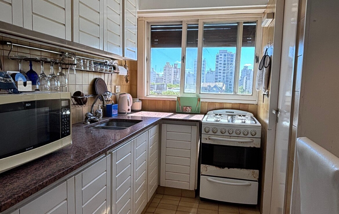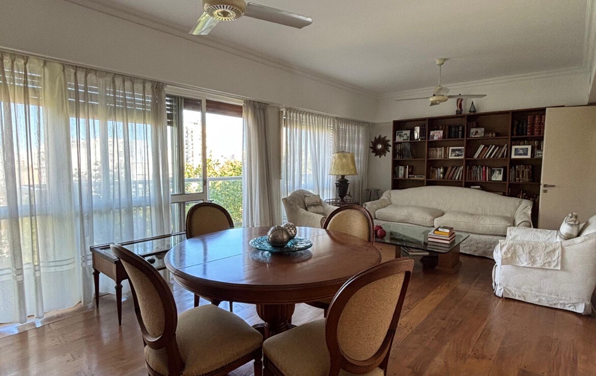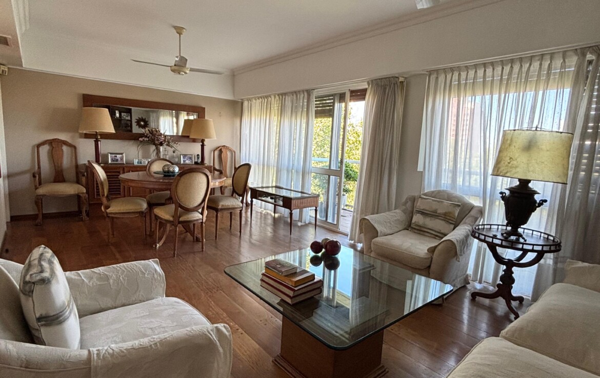 Excelente piso en venta, ubicado al frente y con gran luminosidad. La propiedad cuenta con tres dormitorios, cocina-comedor, estar-comedor con balcón con vista abierta. Un baño completo, un toilette y un baño de servicio. Dispone de calefacción central, lavadero. Cochera semicubierta, y en el subsuelo se incluye una cómoda baulera.